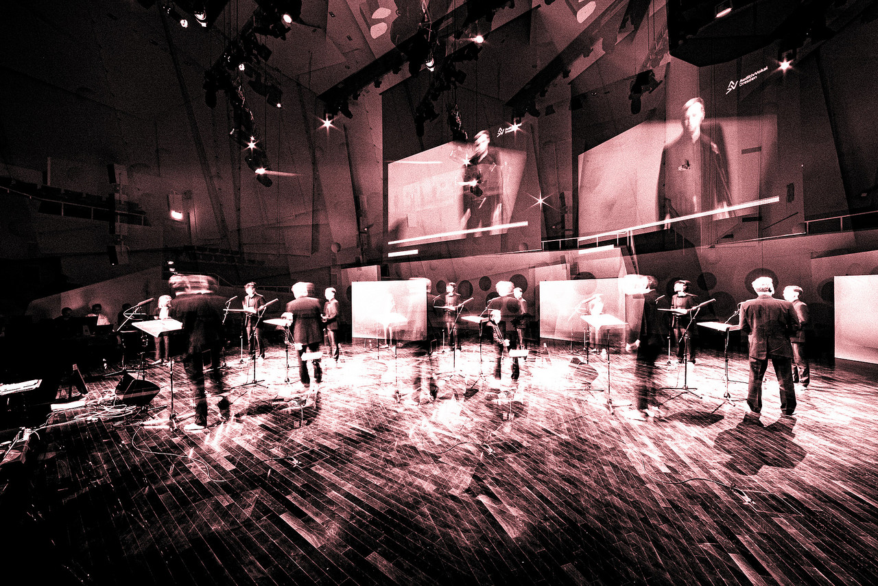 Its 36 members are active in a variety of configurations, from small a cappella performances to elaborate stage creations to classical orchestral concerts, having toured throughout Europe and in North and South America. Over the years, their repertoire has grown to over 120 premieres, whether their own productions, collaborations with renowned composers, or interpretations of early music, plus a wealth of recordings and radio commissions. All the while, they've maintained a socio-political ethos in their work, constantly challenging themselves to explore and question the intrinsic value of art as well as the fragile values of democracy and empathy.