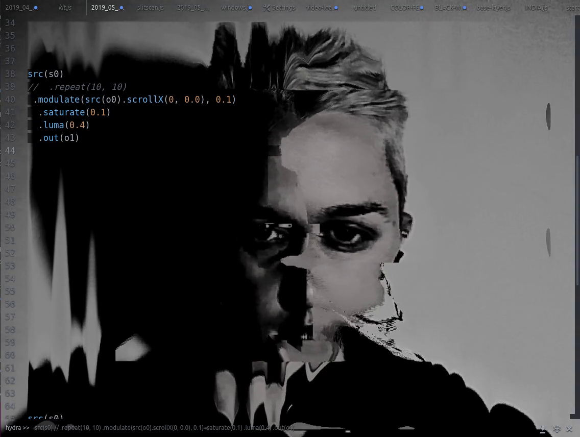 She is the developer of various browser-based creative tools including Hydra (live-coded video synthesizer), PIXELSYNTH, Pixeljam (collaborative code editor) and LiveLab (peer-to-peer media router). Her live visual sets explore algorithmic representations of unpredictable and chaotic systems, and writing software as a messy and ephemeral process.
