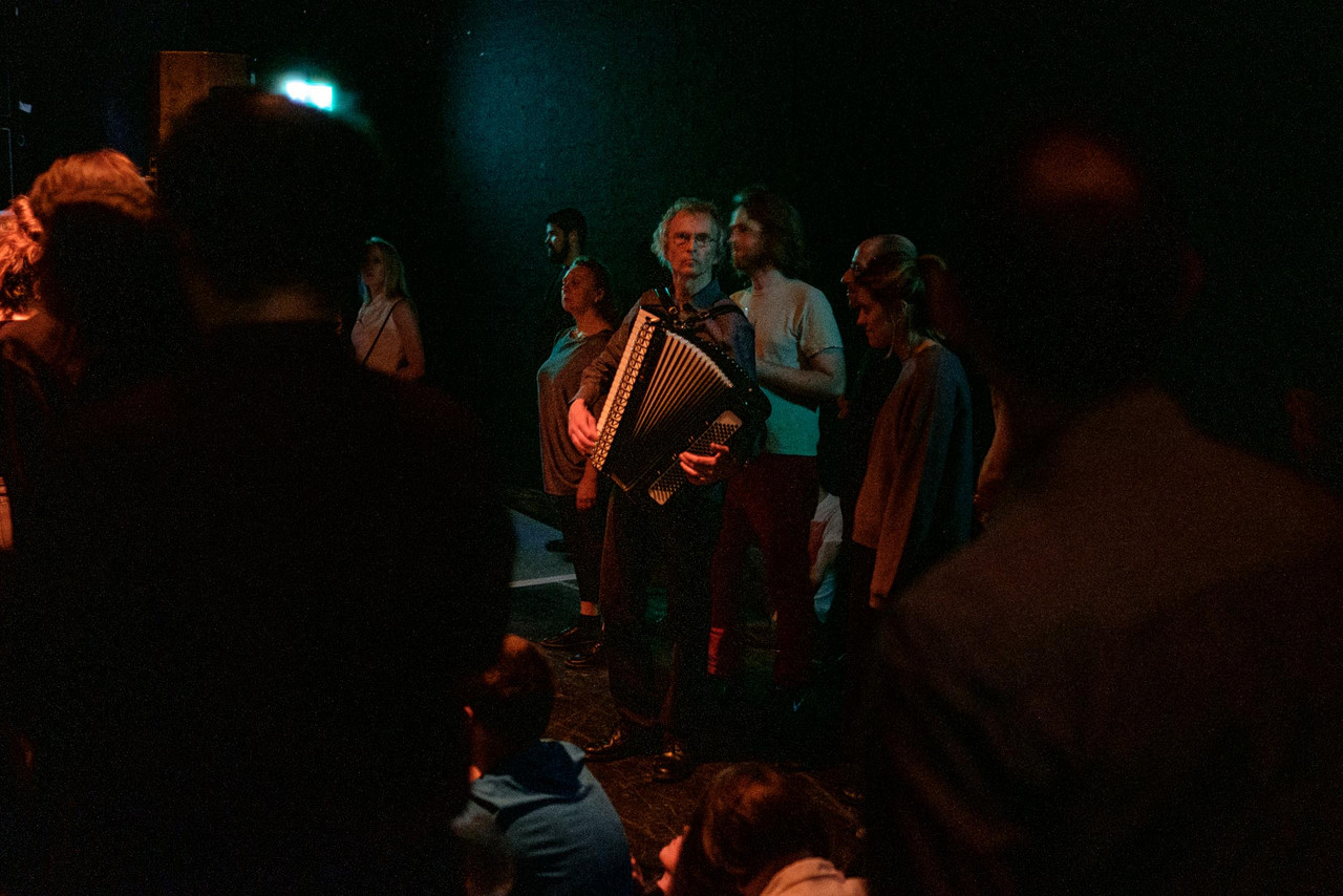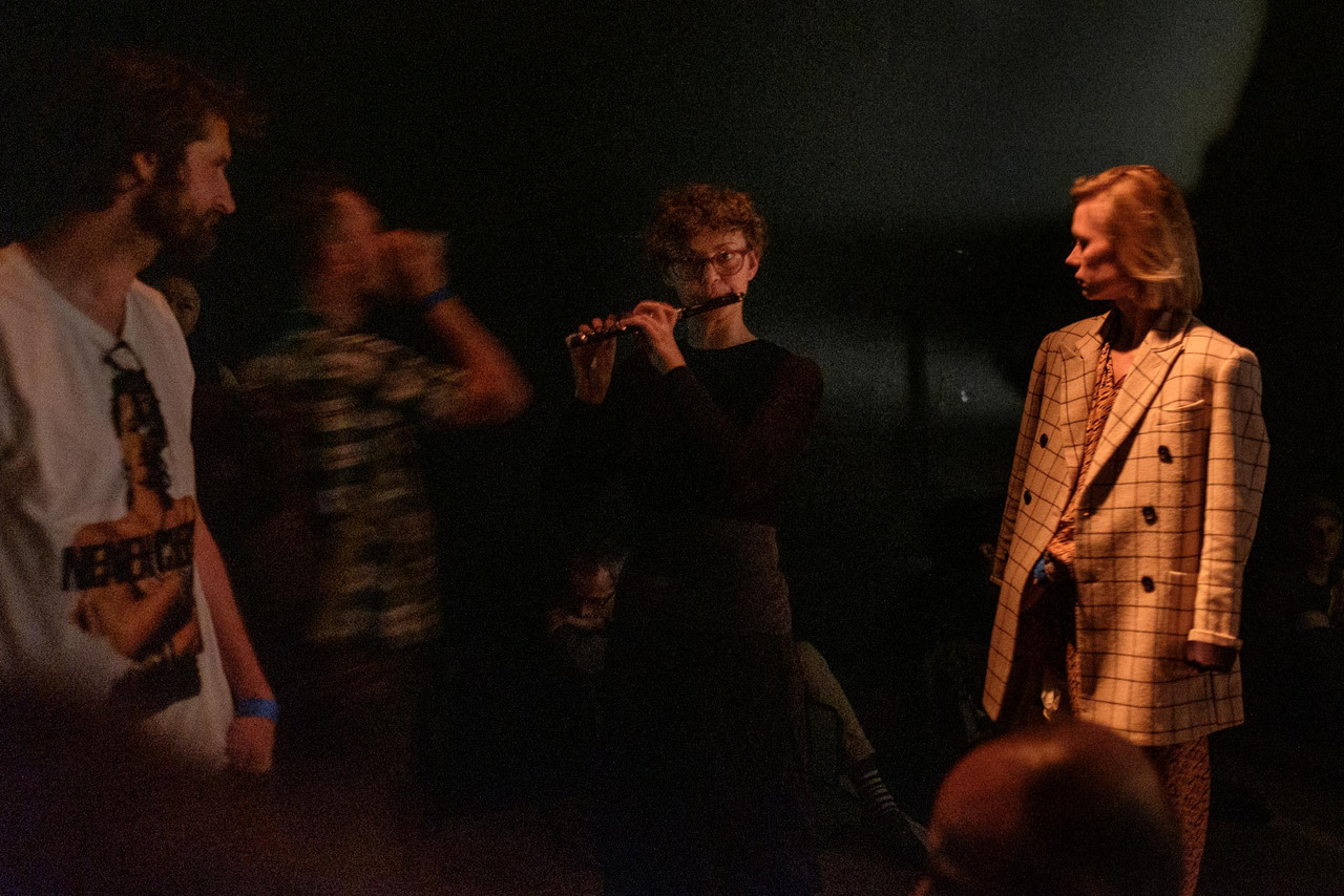 Performed by members of Ensemble Contrechamps & Zwischentöne: Susanne Peters and Dorothee Sporbeck (flute), Maximilian Haft and Akiko Ahrendt (violin), Lucy Railton (cello), Volker Schindel and Helles Weber (accordion), Bill Dietz (artistic direction, electronics, conducting).