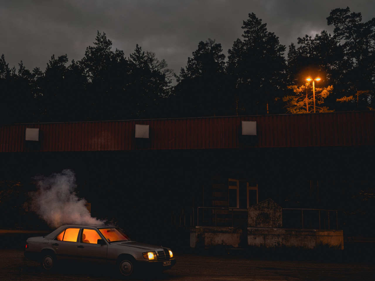 Presenting the live premiere of the album and A/V show »Lunng«, Sam Slater’s heavy experimental electronics and layered sound design takes on new dimensions through Lukas Feigelfeld’s chilling cinematic visuals and Theresa Baumgartner’s monumental lighting display. Over Slater’s distorted and energetic compositions, Feigelfeld’s eerily processed dashcam footage merges seamlessly with Baumgartner’s immersive light theatrics, creating a dialogue between the identity-defining urgency of adolescent roadtrip listening and the uneasy bandwidth of the current moment. Memory and immediacy collapse into a disorienting, genre-bent reverie: one eye on the rearview and the other fixed on the unknown.