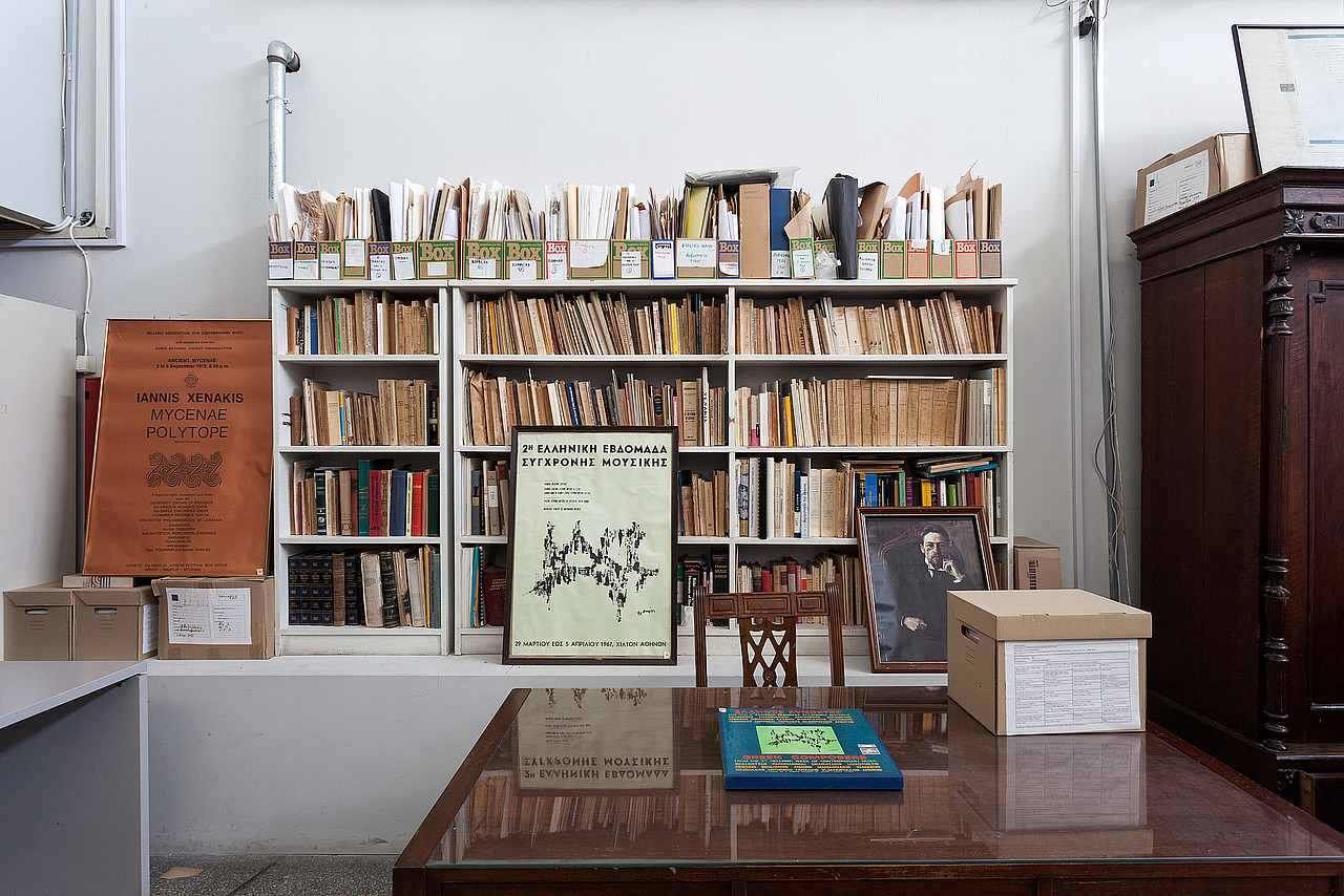 Currently within the CMRC archive lies a treasure trove of live and studio recordings, original scores, programme notes, photographs, letters, and handwritten notes, as well as instruments and pieces of equipment. These were collected from several disparate sources, including personal archives of composers, musicians, collectors, and new music enthusiasts. Among these documents we find hours of tape recordings of unreleased works by local and international artists, graphic scores by Anestis Logothetis, and the correspondence of Iannis Xenakis. Parts of the archive have been made available to the public for limited periods either as part of exhibitions or of online libraries. The conservation and availability of the archival material raises complex issues of copyright, authorship, funding, and institutional prestige. For the time being, since 2018, CMRC functions as part of the Athens Conservatory and its archive has been integrated in the Conservatoire's collection, which also includes other archives and private collections that intricately interconnect, for example the Janni Christou archive.