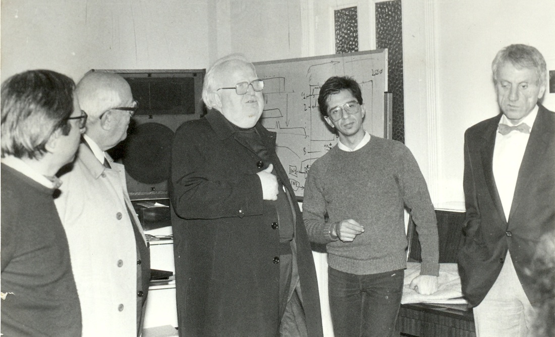 Xenakis' shadow looms large over the CMRC (Κ.ΣΥ.Μ.Ε.), the »/ks/« sound at the beginning of the Greek acronym acoustically reflecting how the X in the composer’s surname is pronounced in Greek. Xenakis was a singular figure in the European avant garde at the time. In many ways he embodies the archetypal polymath auteur. His compositional methods draw elements from wildly diverse sources, incorporating mathematical, statistical, and architectural concepts as well as themes from ancient Greek mythology. His works incorporate classical instrumentation alongside electronic electroacoustic sources and musique concrete manipulations. He often presented his works as large-scale events, somewhere between sonic theatre and installation work. By the late 1970s he was already an established figure, and among the few composers in the international new music scene that pushed boundaries while still managing to reach large audiences, far exceeding the Greek context where he was by comparison little known.