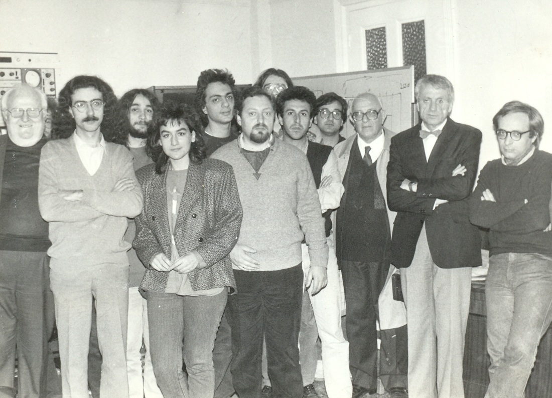 Many among the composers and musicians that gathered around the studio around this time had been taught by the preceding generation (Xenakis, Papaioannou, Adamis etc) and in many ways are seen as the continuation of that lineage. At this time there was much greater technical literacy and familiarity with electronic equipment among them and the music that was being produced documents the gradual move from analogue to digital technology. Some favoured purely electronic sound and many were active in the production of music for dance, theatre, film, and radio, while others were interested in more popular musical idioms. Charis Xanthoudakis, Dimitris Kamarotos, Akis Daoutis, Costas Mantzoros, Petros Fragistas, Panayiotis Velianitis, Dimitris Karageorgos, and Nickos Harizanos are a few of the composers who were active at the CMRC at that time. The relative openness around the centre gave many composers the opportunity to pass through its doors and become loosely associated for specific time periods before moving on. For others it offered a long-term roof and a sense of community as they started to also assume increasingly more administrative positions. Perhaps quite tellingly about the general orientation of CMRC and how it promoted ideas of artistic hybridisation (already stated in the »polytechno« concept), some of the more engaged practitioners that remained present throughout the years came from the milieu of fine arts and poetry (Costis Triantafyllou, Spyros Feggos). Presumably, the centre’s growing emphasis on digital electronic media and cross-arts approaches allowed those with a non-musical background or less formal training in music to feel welcome, and to experiment freely with CMRC’s resources.