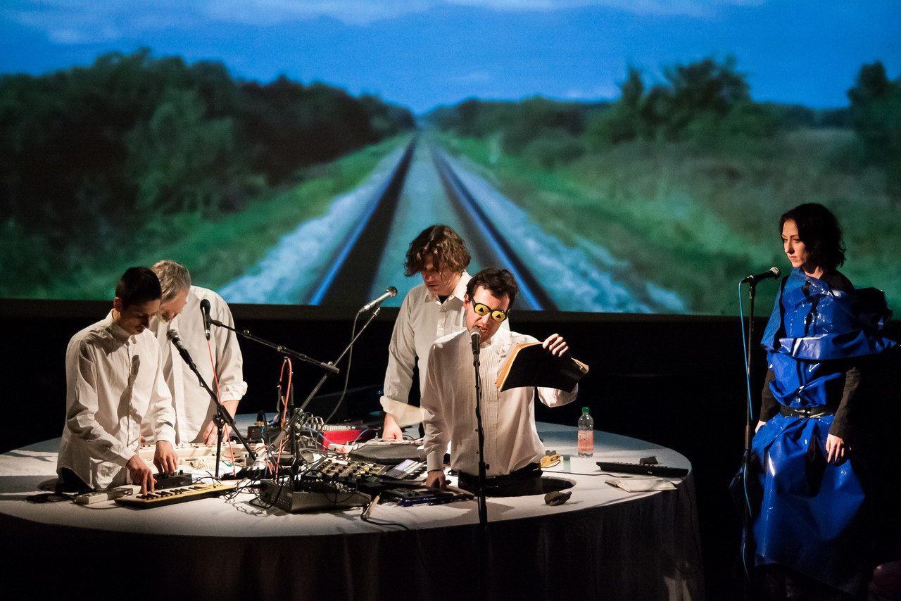 And then in rolled Łukasz Szałankiewicz from Poznán, a member of the Polish Society for Electroacoustic Music, historian, sound designer, and electronic musician, with Bogusław Schaeffer’s »Synthistory« in his luggage. At one point, one could detect the sound of some clockwork collapsing. Szałankiewicz thereupon played his own version of »Synthistory,« namely »Signalstory:« a real pumping loud, high- and low-frequency performance from within the magnetic field of a bunch of Walkmans. A multimedial concert whose aesthetics recalled the electronic excursions of the Brit group Coil was performed under the title »Dein Bart in Zeit und Raum« (Your Beard In Time and Space) by Latvian artists Andris Indans, Stropu Jurka, Normunds Griestin'š, Toms Aunin'š, Anna Kirse Aunina, and Indrik'is G'elzis, in memory of Hardijs Ledinš, the architect, pioneer of electronic music in Latvia and founder of the »Workshop For The Restoration Of Feelings That Never Were,« who died in 2004. This programme item gave rise to the combo The First Latvians On Mars. From neighbouring Lithuania came the DISSC-Orchestra: Jonas Jurku-nas, Antanas Jasenka, Vytautas V. Jurgutis, and Martynas Bialobžeskis. They played their composition »Venta« on Soviet synths: a performance that led one of those present to dub it »The Great Analogue Hurricane.«