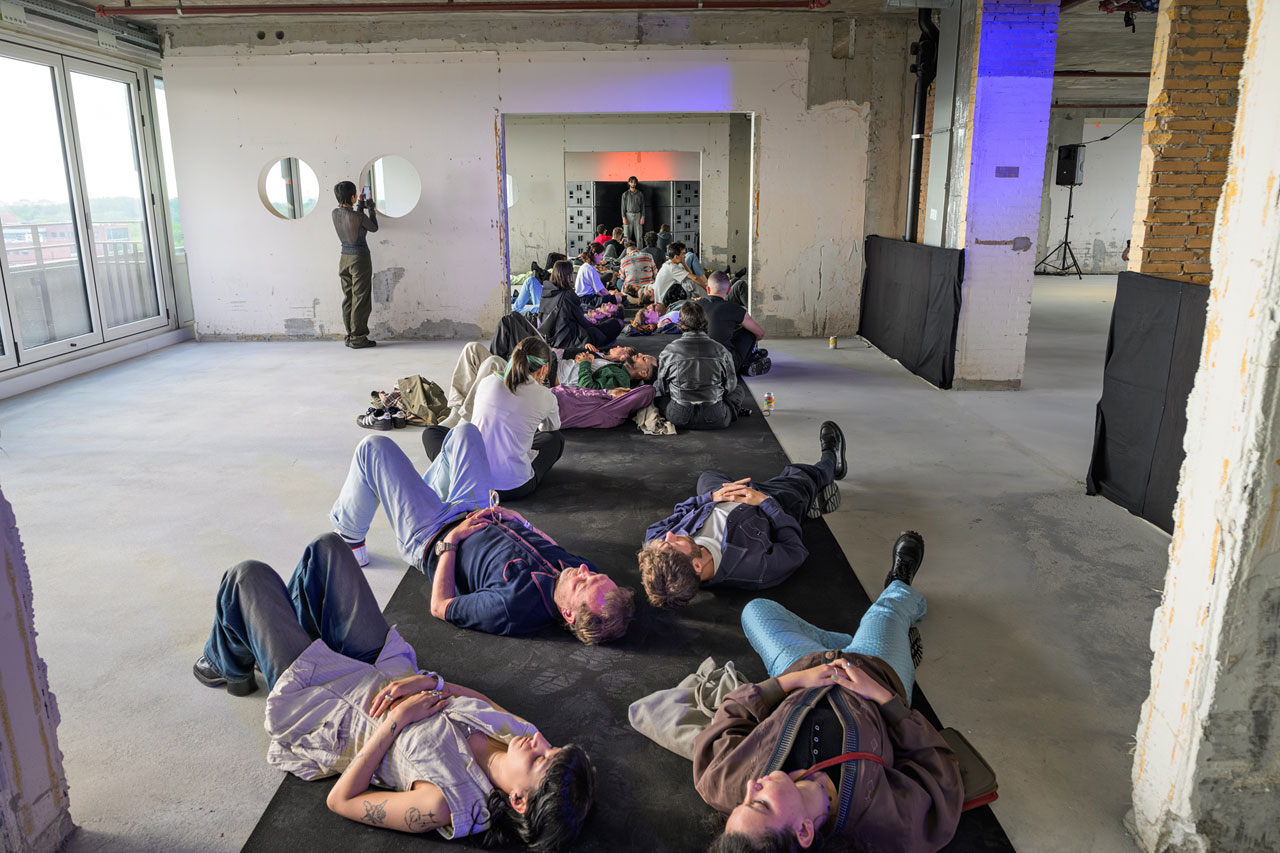 Building on this foundation, B.A.S. creates tactile sonic environments designed to engage bodies directly, using low-frequency sound waves to address symptoms and causes often linked to neoliberal capitalism, like stress, anxiety, fear, the permanent acceleration of data production and information processing, as well as the expectation of constant availability and immediate response.