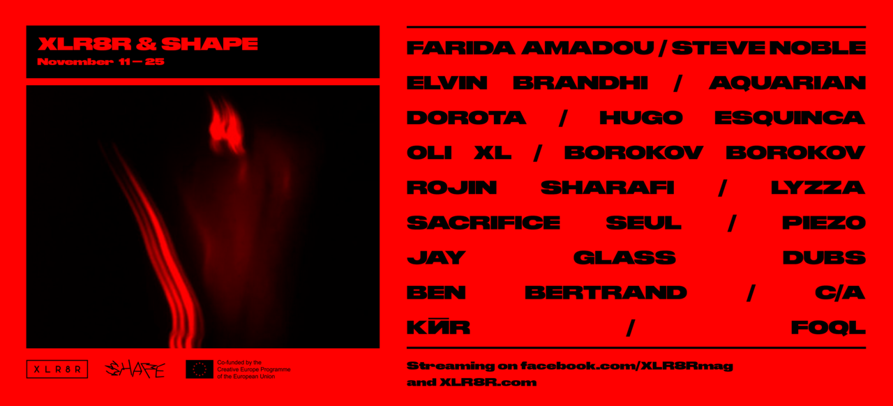 SHAPE platform & XLR8R announce a two-week collaboration that will see XLR8R premiere string of exclusive live streams and mixes from a selection of 2020 SHAPE artists. Live video streams will be accessible via the XLR8R Facebook page and SHAPE platform Facebook page, and will be archived on XLR8R’s website afterwards. Pre-recorded sets and mixes will be posted directly on XLR8R's website. The event consists of 16 acts, each supported by a SHAPE member organization.